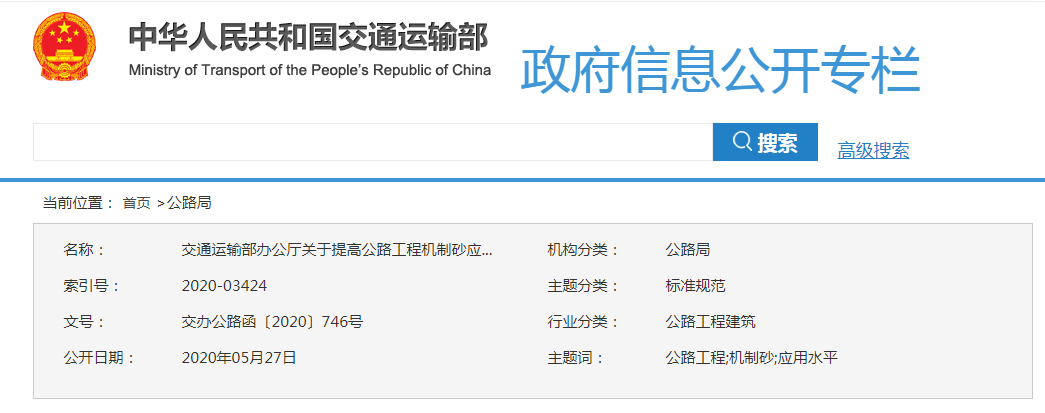 但是,今日機(jī)制砂行業(yè)迎來新的曙光,為解決河砂緊缺局面,交通運(yùn)輸部發(fā)布《交通運(yùn)輸部辦公廳關(guān)于提高公路工程機(jī)制砂應(yīng)用水平的通知》,對(duì)機(jī)制砂石質(zhì)量給出具體參考標(biāo)準(zhǔn),各地可結(jié)合實(shí)際情況在應(yīng)用過程中制定實(shí)施細(xì)則,不斷加強(qiáng)機(jī)制砂生產(chǎn)與應(yīng)用過程中的質(zhì)量管控,確保機(jī)制砂質(zhì)量。