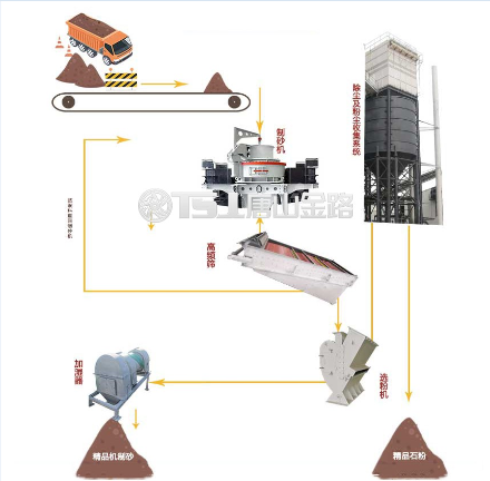 能耗低:采用制砂選粉一體機,有效提高入料粒徑、入料量和破碎效果。