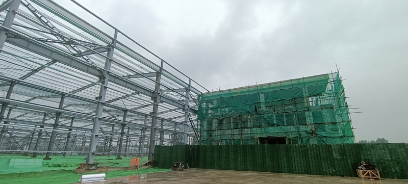 智能化生產(chǎn)廠房包括數(shù)字化展廳、備品備件庫等,建筑面積13800平米,目前所有的鋼結(jié)構(gòu)安裝已經(jīng)完成,正在進行封裝工作。